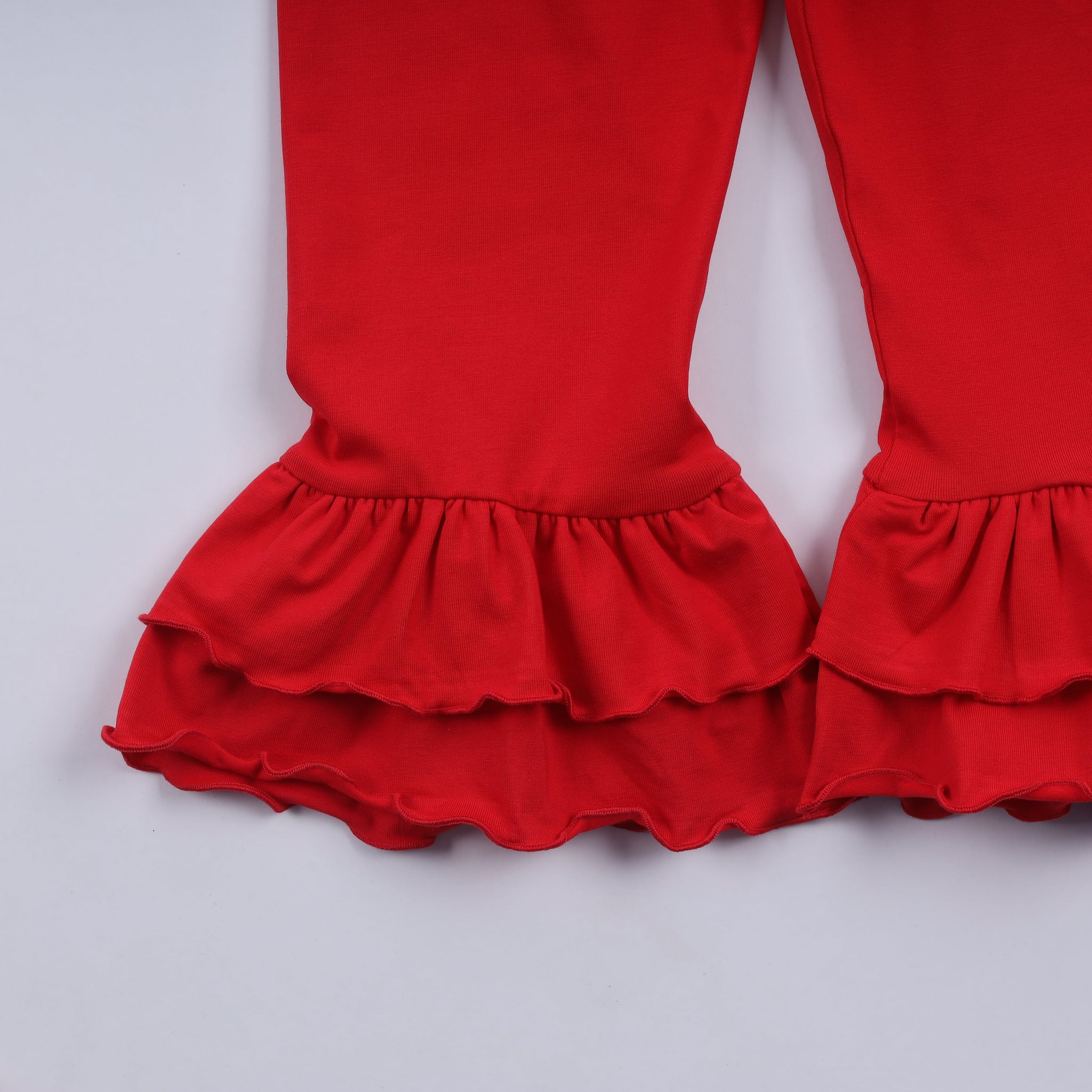 Adorable red gingerbread-patterned set featuring hand-smocked details and charming ruffle pants. Perfect for little ones who love festive style with a touch of whimsy. The smocked bodice adds texture and movement, while the ruffled pants create a playful silhouette that's as fun to wear as it is to look at. Ideal for holiday celebrations, special occasions, or everyday adventures with personality.