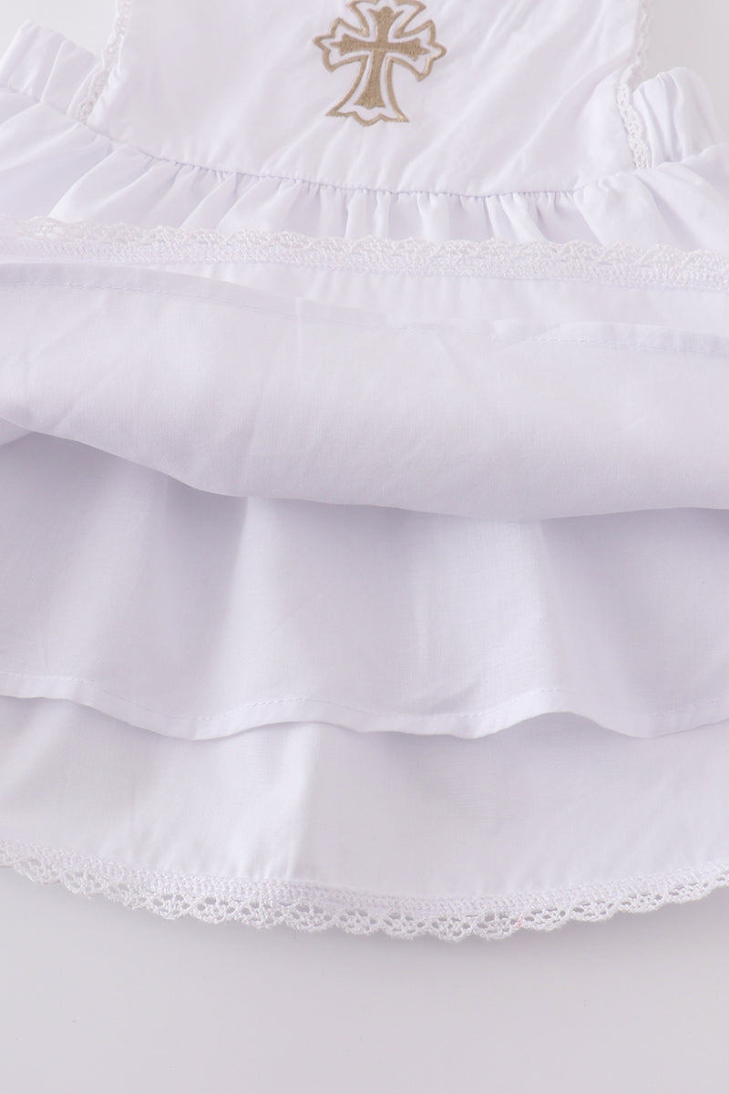 Unleash your inner fashionista with our Premium Cross Embroidery Romper! This playful piece features intricate cross embroidery and a flattering fit. Perfect for any occasion, you'll be turning heads and making a statement wherever you go. (Warning: may cause extreme confidence and compliments.)