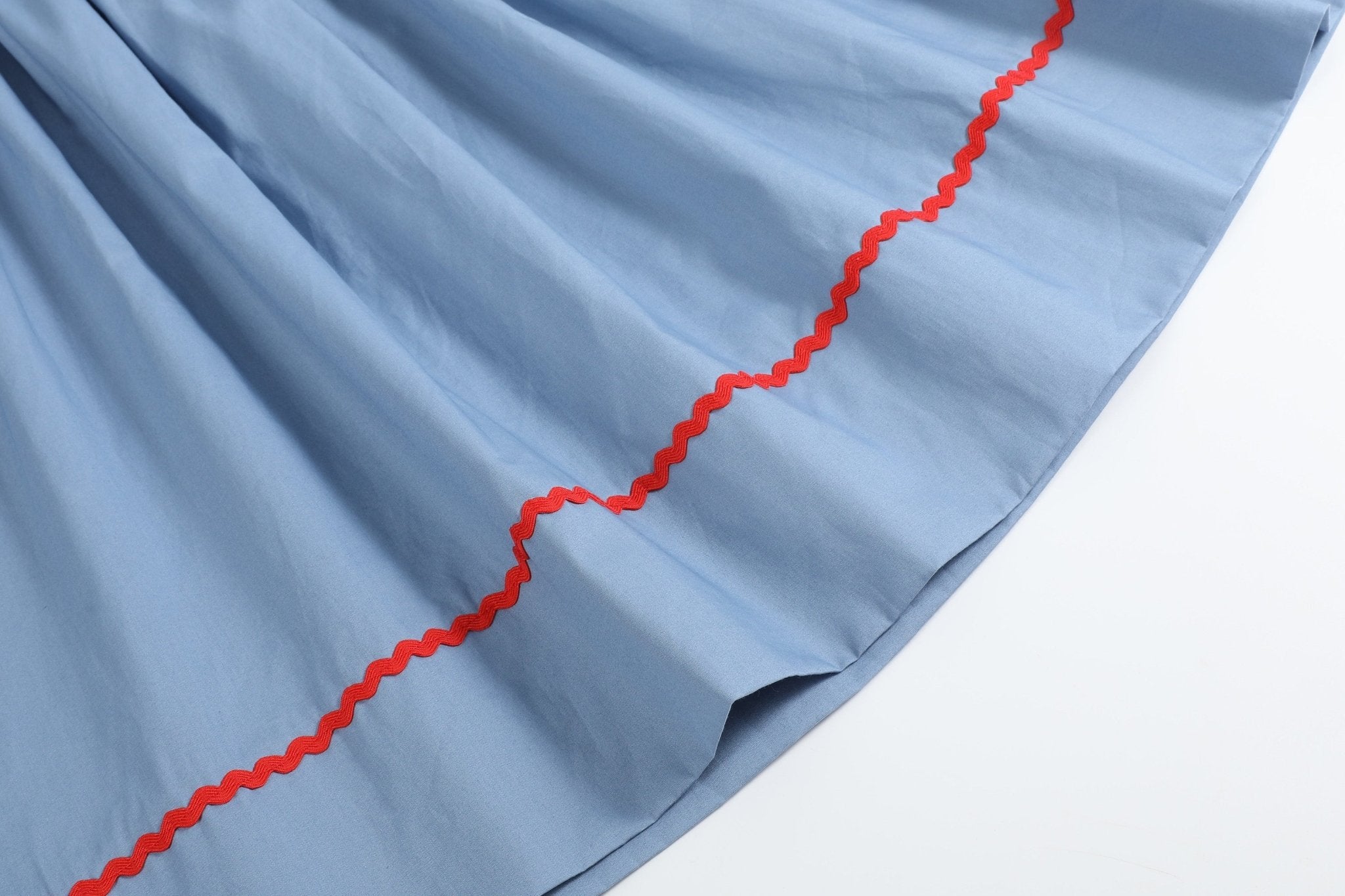 Your sweet girl will be the cutest on the farm in this Blue Farm Animal Smocked Bishop Dress! Featuring a smocked neckline with embroidered farm animals and playful red rickrack trim, this dress is a must have for any occasion. The classic bishop length, falling to mid-calf/ankles, offers timeless style with a comfortable fit. Perfect for hayrides, county fair, or everyday adventures!