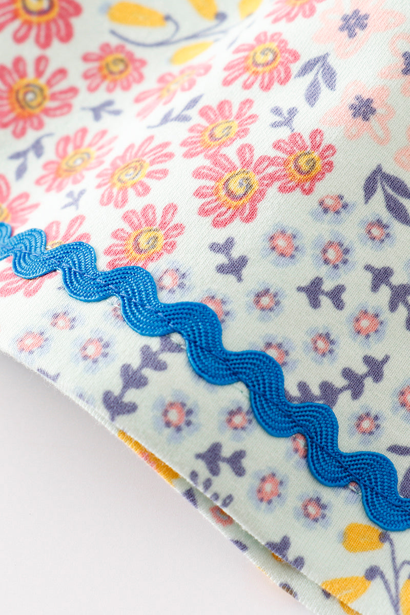 This dress will have you blooming with style! The blue floral print adds a touch of color while the ruffle detailing adds a playful element. Perfect for any occasion, this dress is a must-have for any fashion-forward individual looking to make a statement.