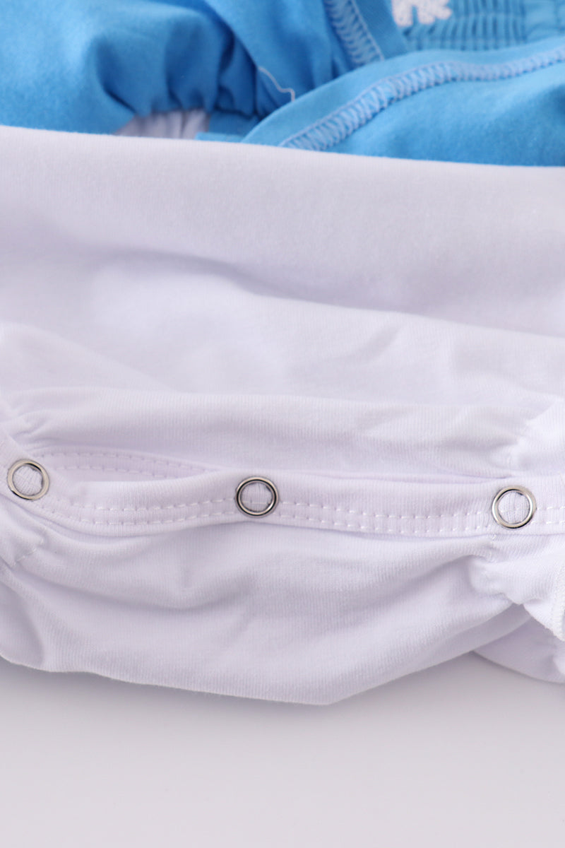Get ready to chill out in style with our Blue Frozen Smocked Girl Bubble! This darling dress features a smocked top and a cool blue design inspired by the popular film. Perfect for any little girl who loves to stay cool and trendy. Let her show off her unique style in this fun and playful bubble dress!