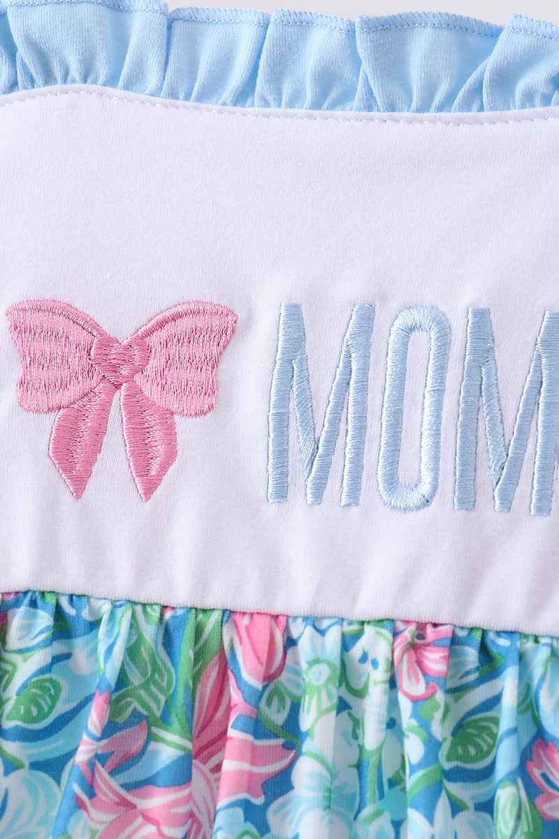 Adorable two-piece set featuring a sweet "I love MOMMY" embroidery design that celebrates the special bond between parent and child. The soft blue fabric pairs perfectly with charming ruffle details on the shorts for an extra touch of cuteness. Ideal for playdates, family outings, or cozy days at home, this set combines comfort with heartfelt style that mom will absolutely treasure.