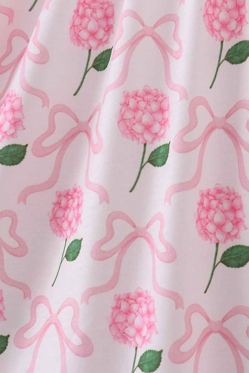 Twirl into springtime style with this charming pink bow hydrangea smocked dress! Delicate smocking detail creates a flattering, gathered silhouette while the cheerful hydrangea print brings garden-fresh vibrancy to your wardrobe. The sweet bow accent adds a playful finishing touch that's perfect for tea parties, garden strolls, or any occasion calling for a dash of whimsy. Comfortable and effortlessly cute, this dress is your go-to for looking picture-perfect all season long.