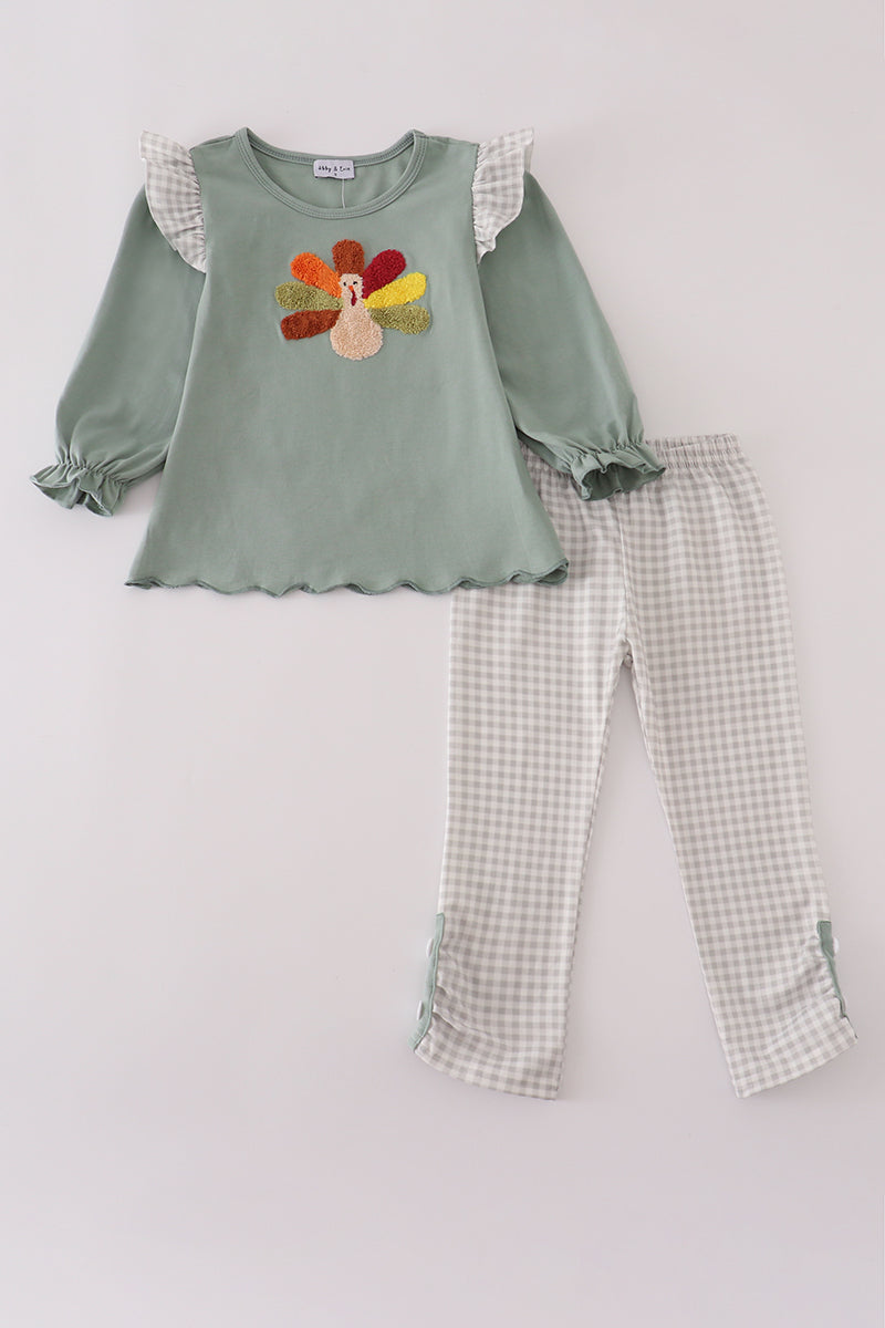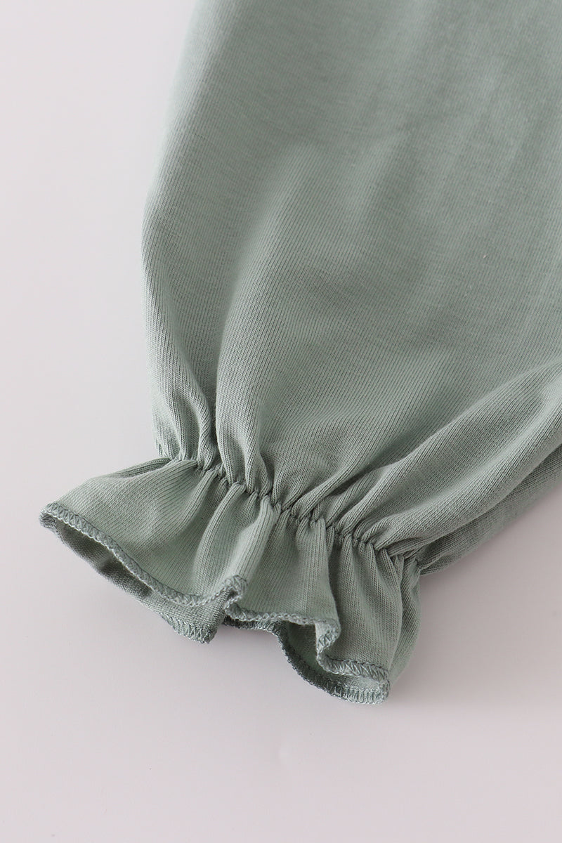 • Load image into Gallery viewer, Sage turkey french knot ruffle pants set