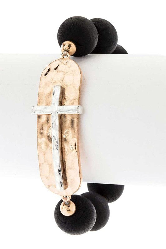 2 Tone Cross Charm Stretch Bracelet