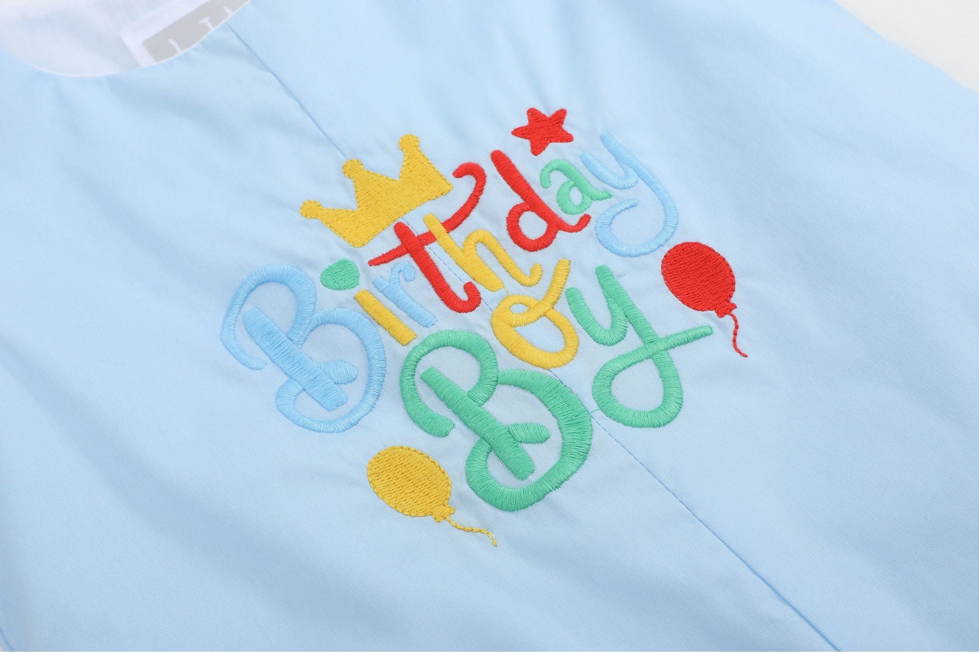 Make his birthday extra special with our Birthday Boy Shortalls! Featuring a charming 'Birthday Boy' applique, adjustable cloth-covered buttons at the shoulder, and convenient snaps at the crotch for quick changes. Perfect for little gentlemen ready to celebrate in style!