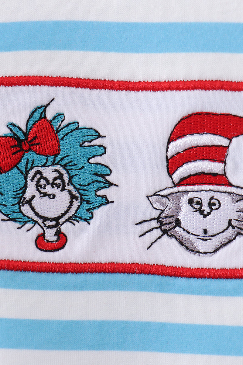 Meet the perfect playdate companion! This charming romper features delightful character embroidery paired with cheerful stripes and adorable ruffled details. The soft blue palette keeps things cool and comfortable, while the fun design sparks imagination and smiles. Ideal for little ones who love expressing their personality through fashion, this piece transitions effortlessly from playtime adventures to casual outings. A wardrobe essential that's as joyful as it is practical.