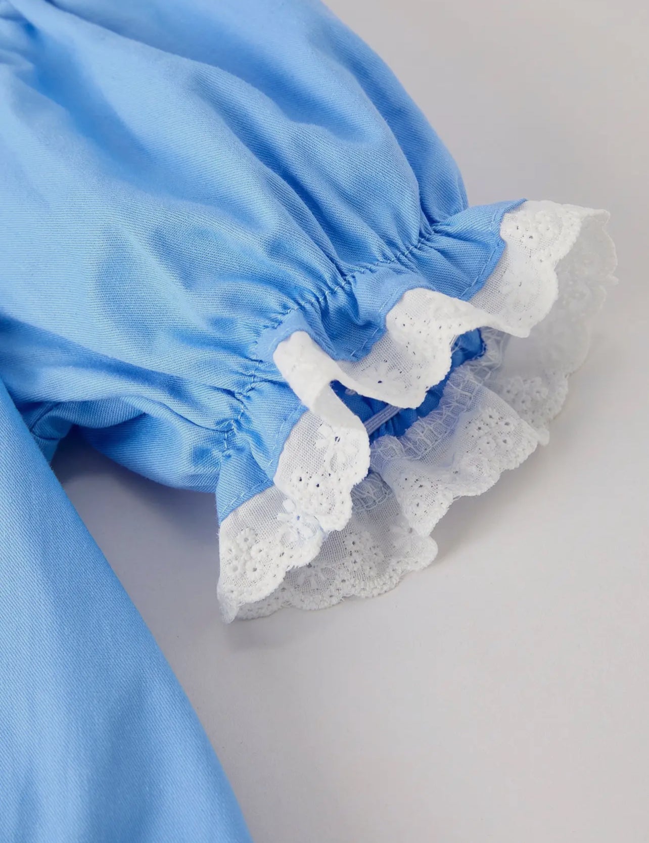 Featuring delicate pumpkin embroidery and lace details, the smock design ensures comfort and ease of movement.