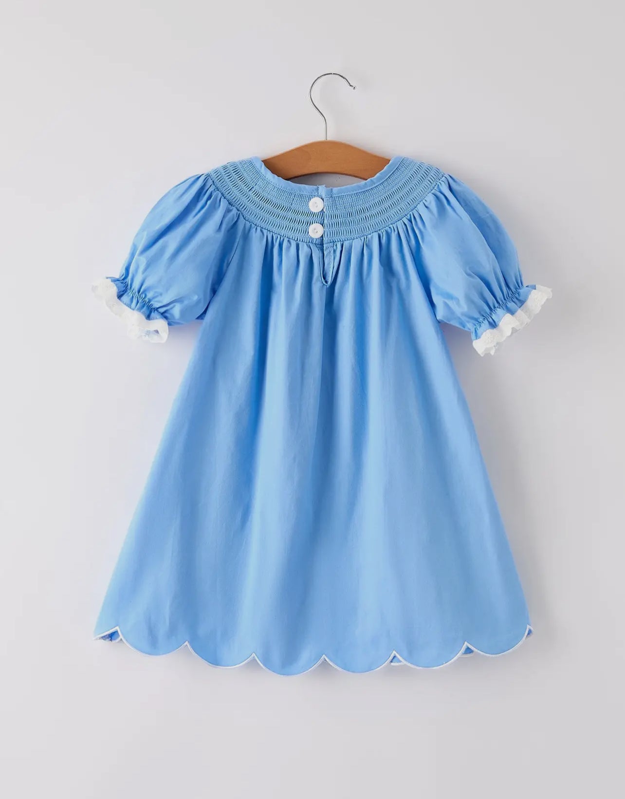 Celebrate the season in style with this charming blue baby girl dress, perfect for Thanksgiving and Halloween.