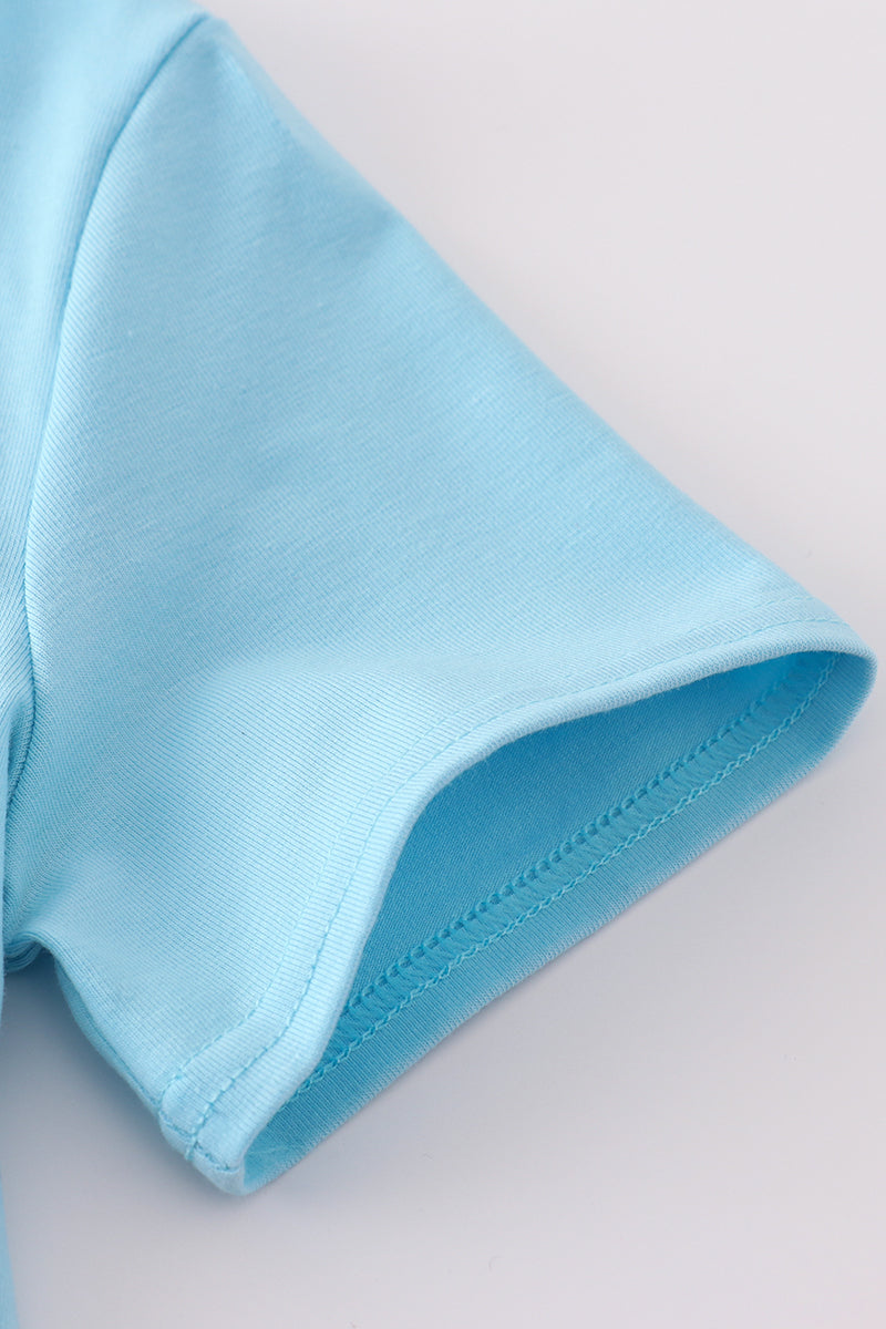 Get ready to frolic in the sun with this adorable blue farm embroidery smocked shorts set! With charming embroidery and a comfortable smocked waistband, you'll be stylish and carefree all day long. Perfect for summers on the farm or anywhere you want to add a playful touch to your outfit. So fun, you'll want to wear it every day!