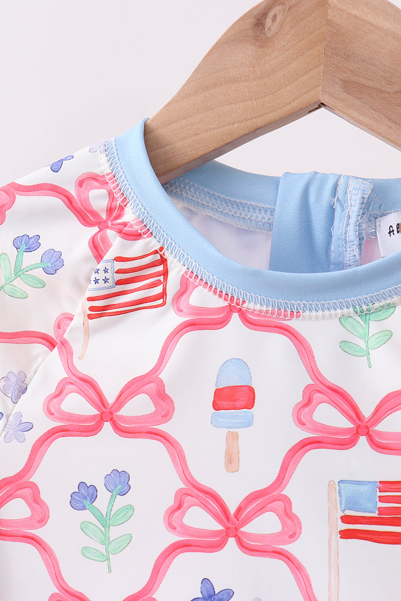 Blue floral bow tie ruffle 2pc swimsuit
