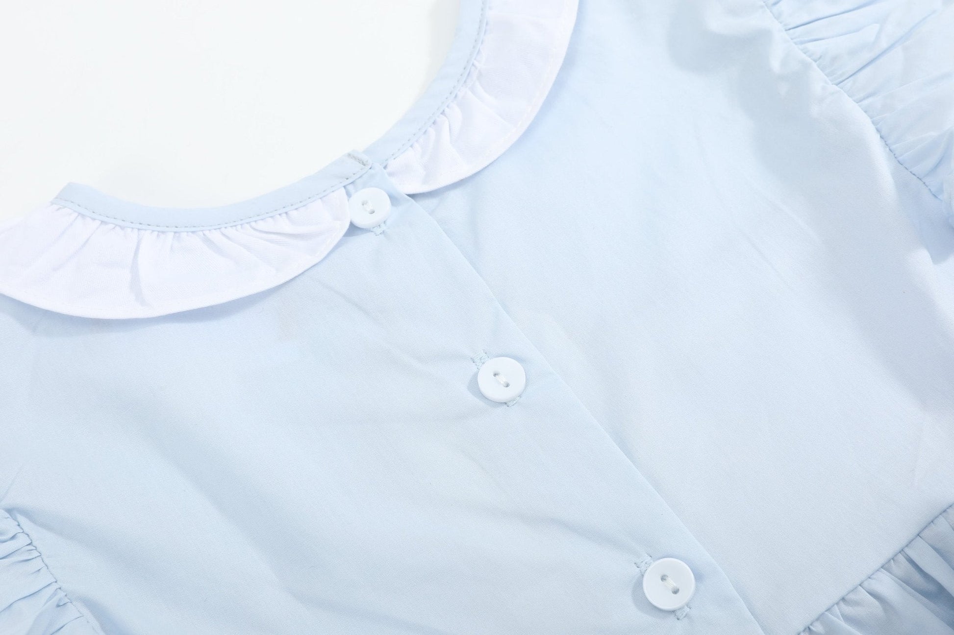The Blue Ruffled Crosses Smocked Dress is a timeless and meaningful piece, perfect for special occasions. Featuring beautiful smocking embroidered with delicate crosses, this dress is accented with sweet ruffle details for an extra touch of charm. Made from 100% soft cotton, it’s designed to keep your little one comfortable while looking picture-perfect. Ideal for church, baptisms, Easter, and family celebrations, this classic dress is both elegant and sweet.