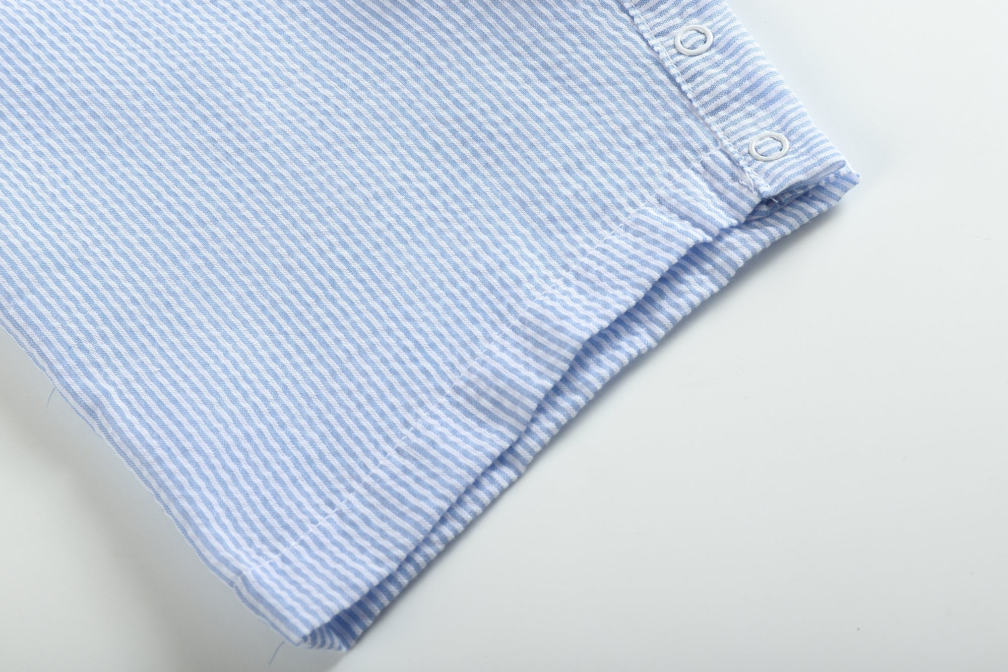 Pumpkin-tastic! This adorable blue seersucker shortalls are detailed with a pumpkin applique. These shortalls feature buttons for easy changing, cute button detailing on the shoulders and made in the softest 100% cotton. This outfit will be the perfect choice for fall from wandering corn mazes to the big turkey dinner.