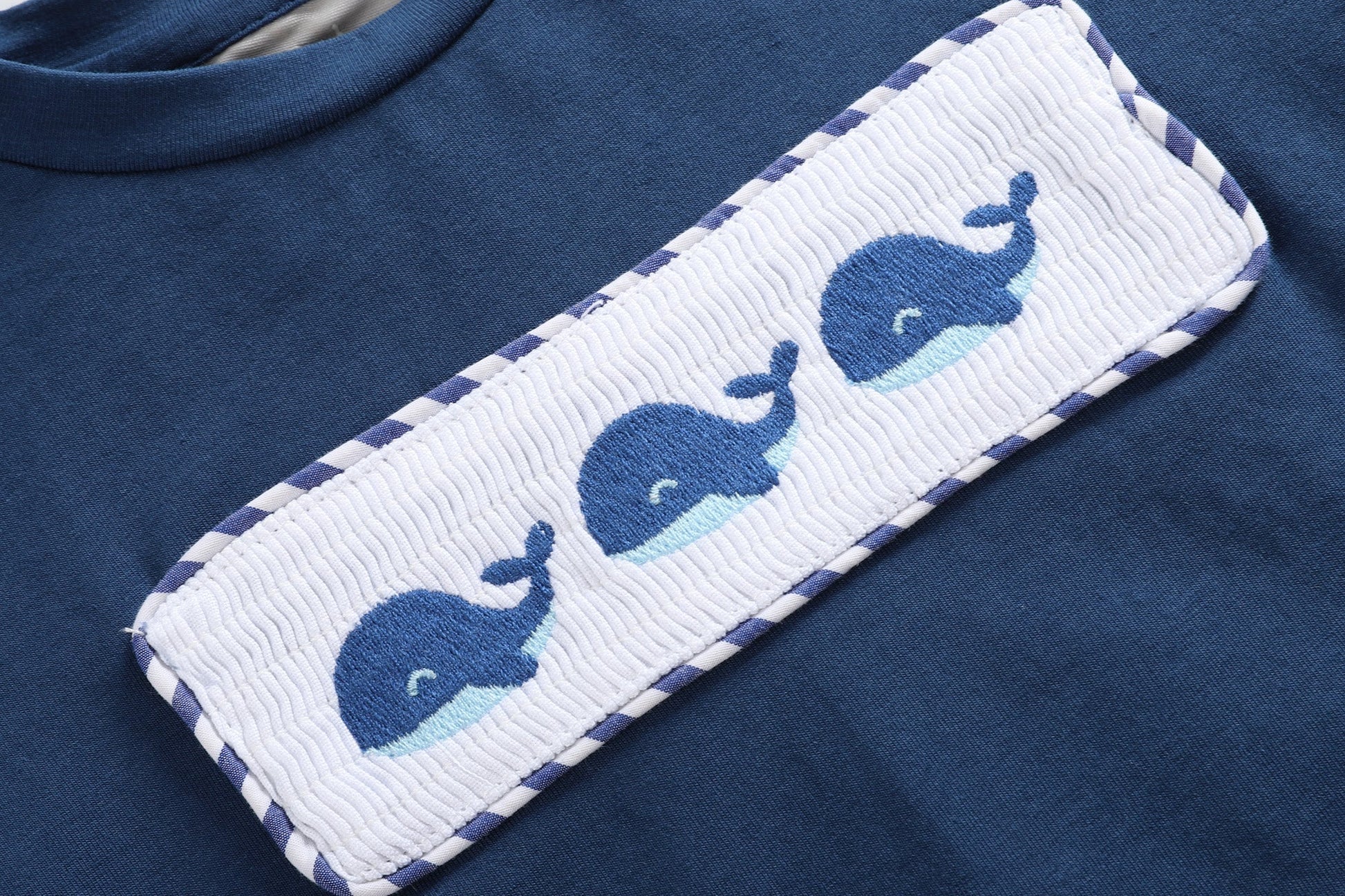 Dress your little one to impress with this whale-tastic two piece set! The stylish smocked panel and sweetly embroidered whales make this set a show stopper. Your little sailor will be ready for sea adventures or days at the park in this adorable shirt and short combo.