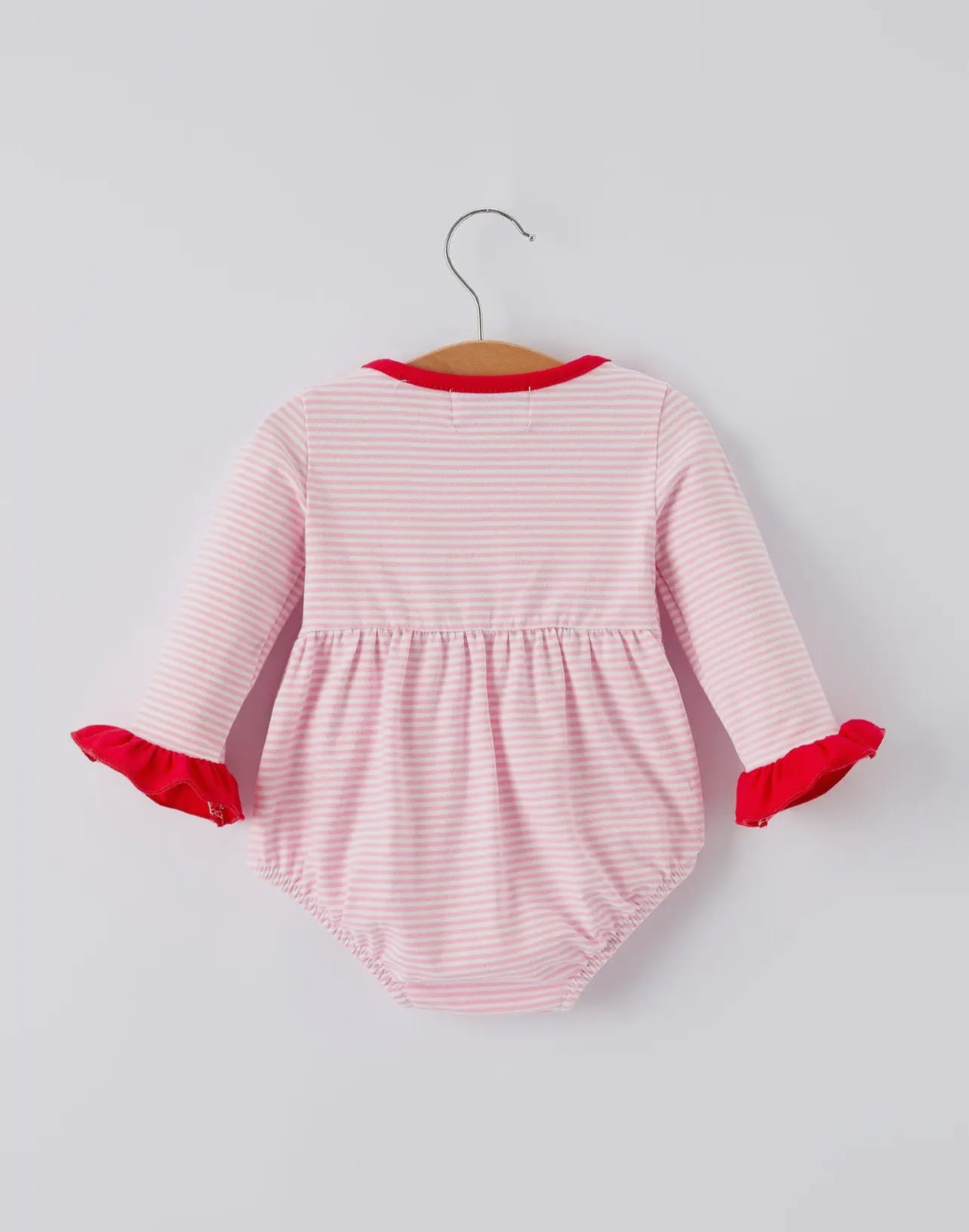 Featuring delicate candy cane embroidery and playful ruffle details, it combines holiday spirit with adorable style.