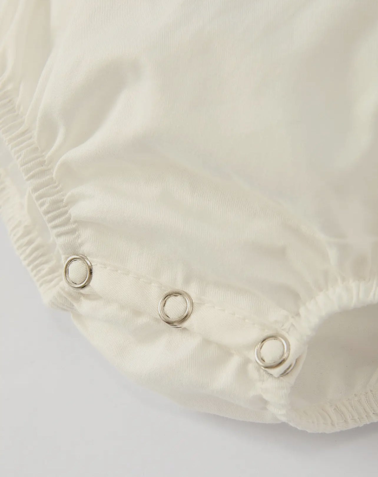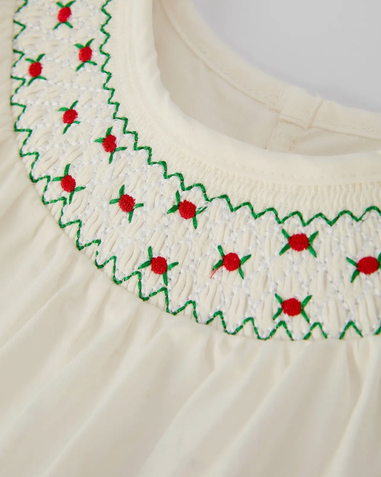 Dress your little one in festive charm with this Christmas Girl's Romper, featuring delicate embroidery that adds a touch of elegance. The vibrant red bow details bring a joyful holiday spirit to her outfit, perfect for family gatherings and holiday photos. Crafted for comfort and style, this romper makes holiday dressing easy and adorable.