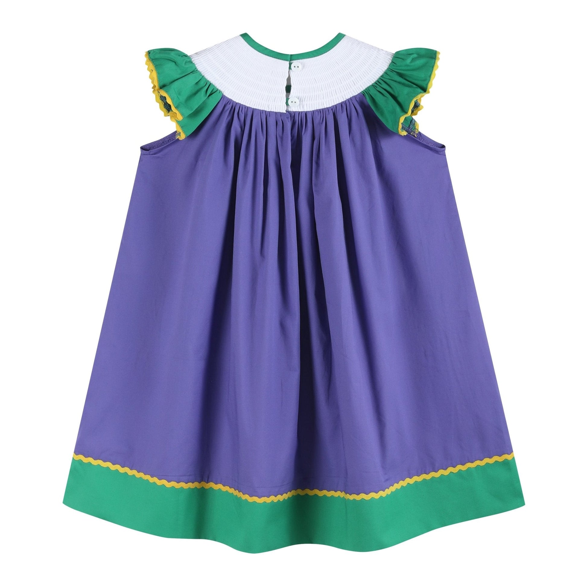 Purple and Green Mardi Gras Smocked Bishop Dress